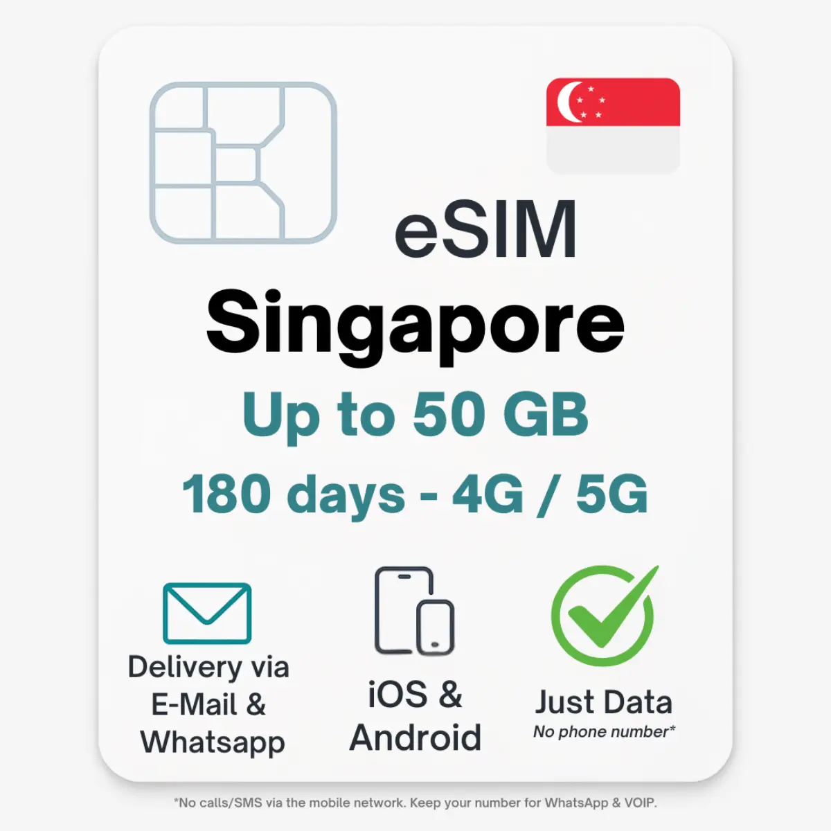 Get the fastest speeds in Singapore with this eSIM plan. Activate your eSIM immediately upon arrival in Asia and enjoy high-speed data without hidden roaming charges.