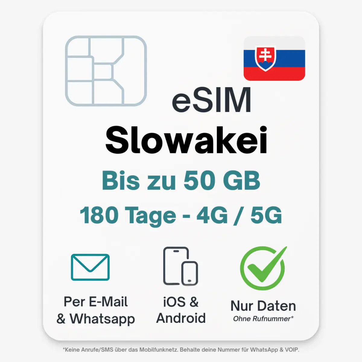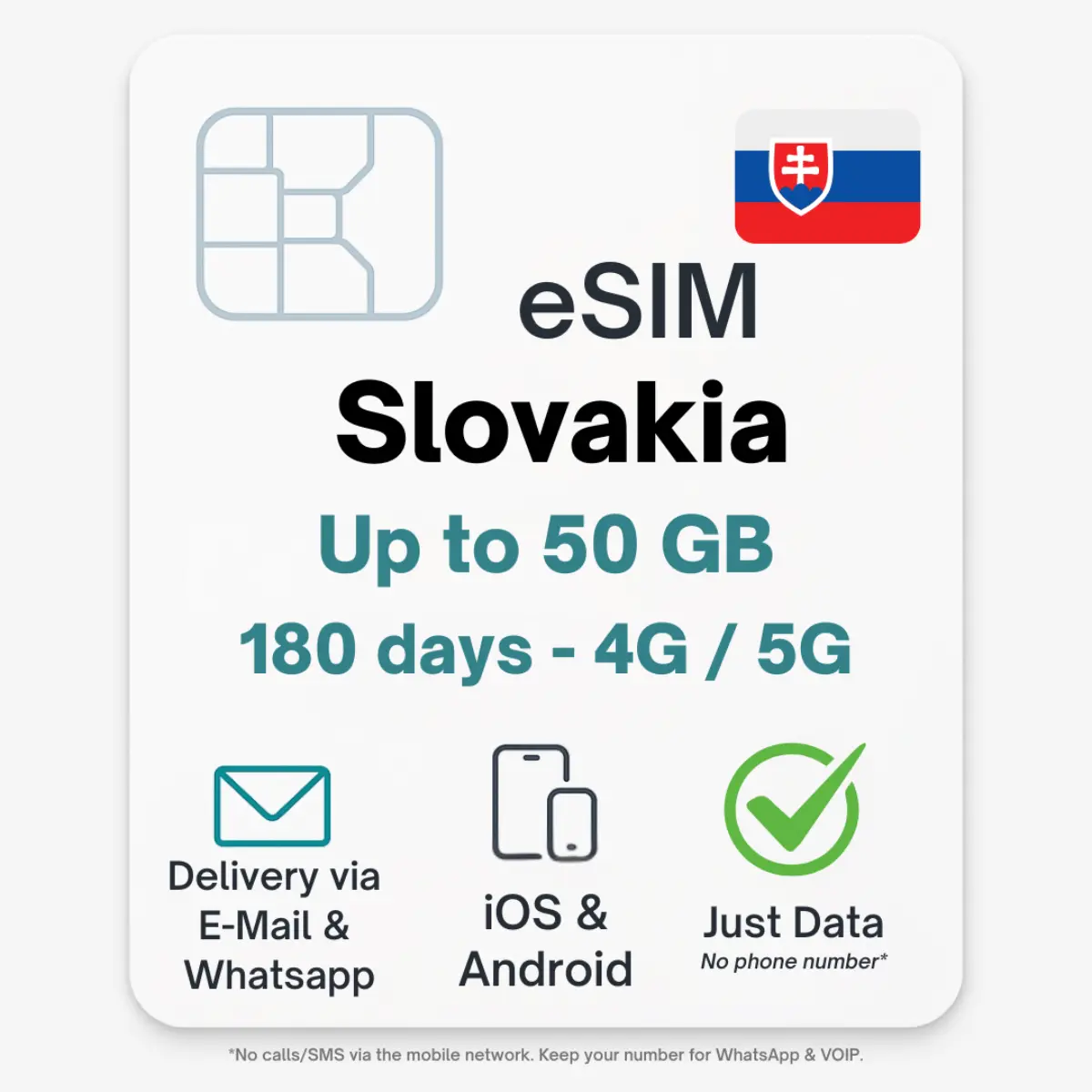 Get the fastest speeds in Slovakia with this eSIM plan. Activate your eSIM immediately upon arrival in Europe and enjoy high-speed data without hidden roaming charges.
