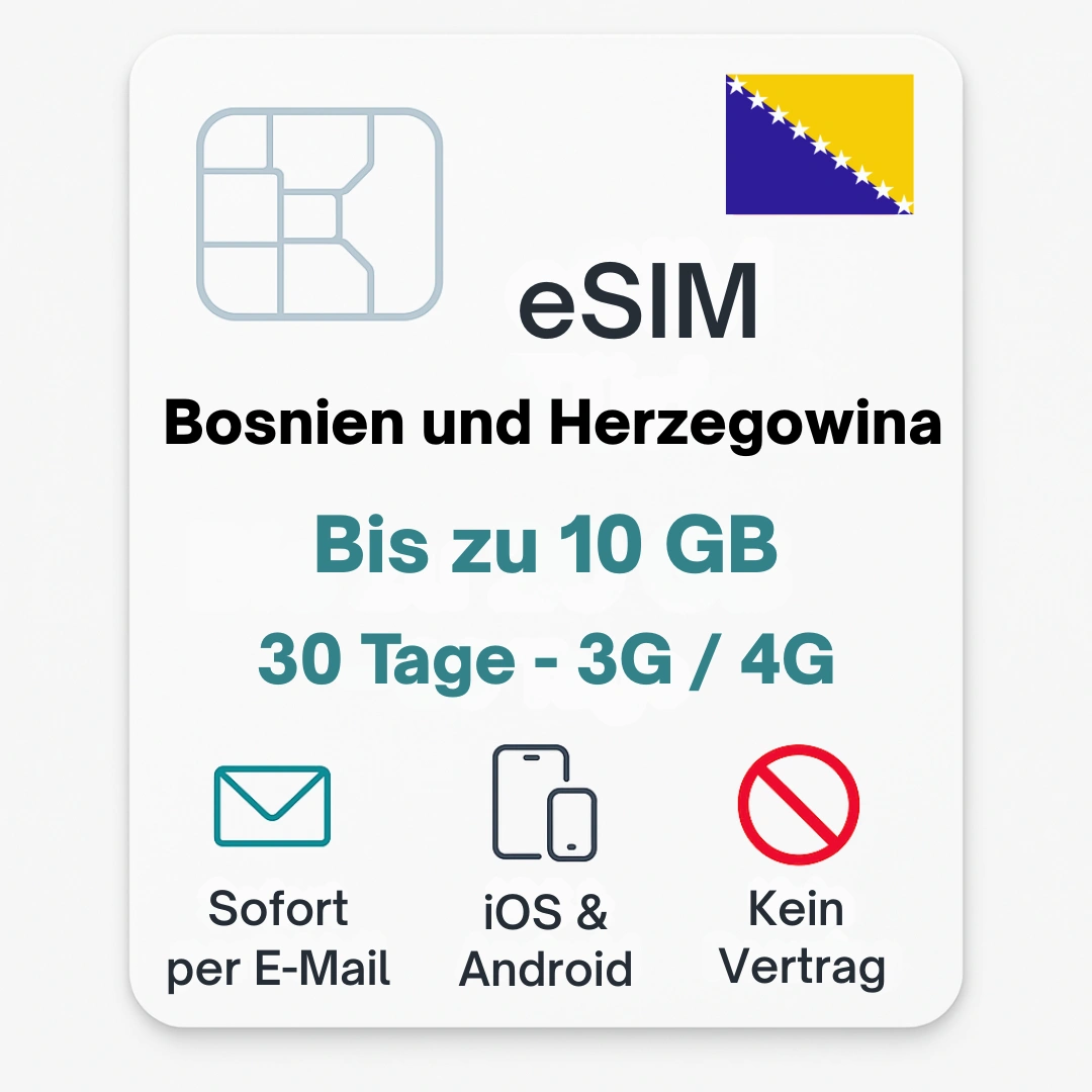 🌍 eSIM Bosnien und Herzegowina – sofort aktivierbar & ohne Roaminggebühren