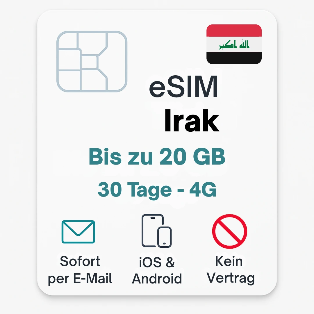 🌍 eSIM Irak – sofort aktivierbar & ohne Roaminggebühren