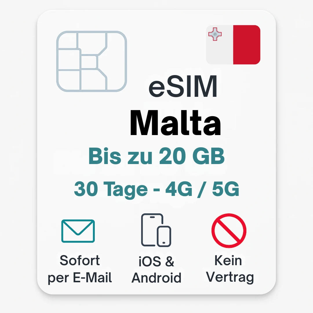 🌍 eSIM Malta – sofort aktivierbar & ohne Roaminggebühren