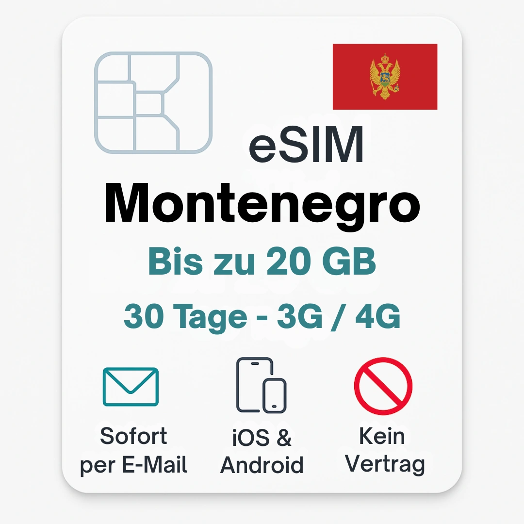 Bleib während deiner Reise in Montenegro jederzeit online – ob in Kotor, Budva, Podgorica oder unterwegs entlang der Adriaküste.