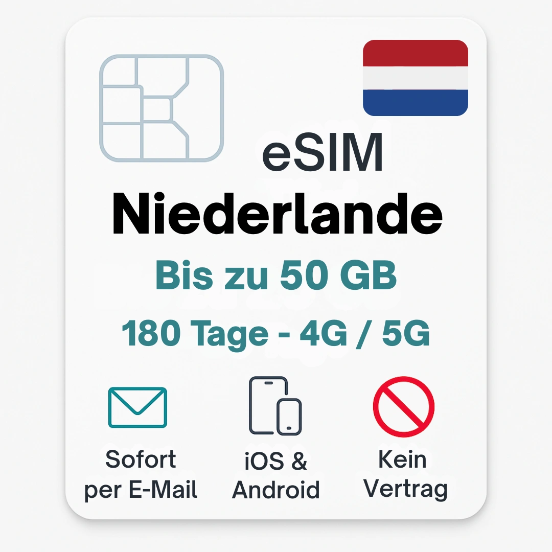• eSIM Niederlande – sofort aktivierbar & ohne Roamingkosten