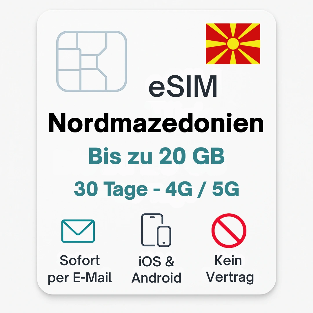 🌍 eSIM Nordmazedonien – sofort aktivierbar & ohne Roaminggebühren