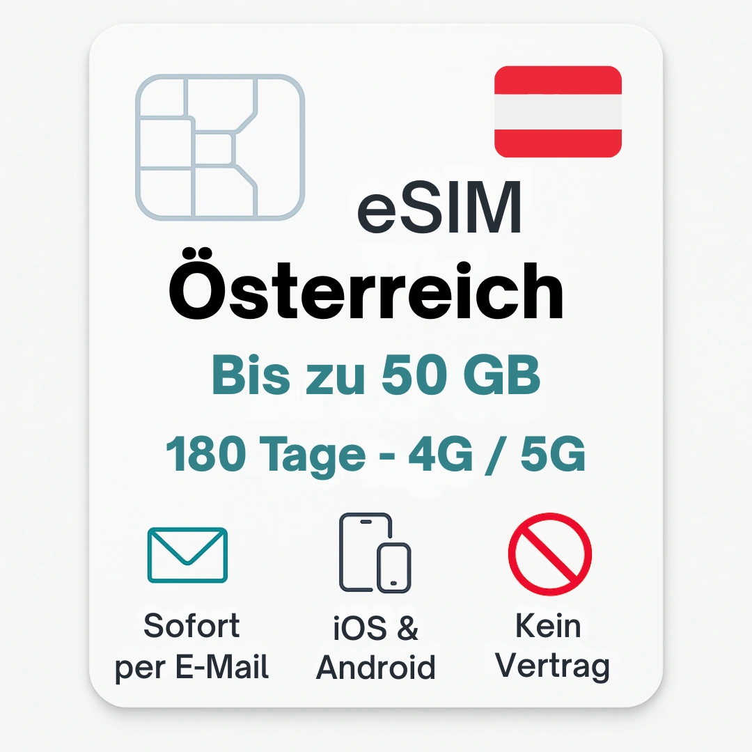 Bleib auf deiner Reise in Österreich jederzeit online – ob in Wien, Salzburg, Innsbruck oder unterwegs in den Alpen.