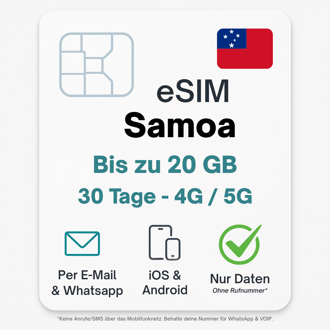 🌍 eSIM Samoa: sofort aktivierbar & ohne Roaminggebühren