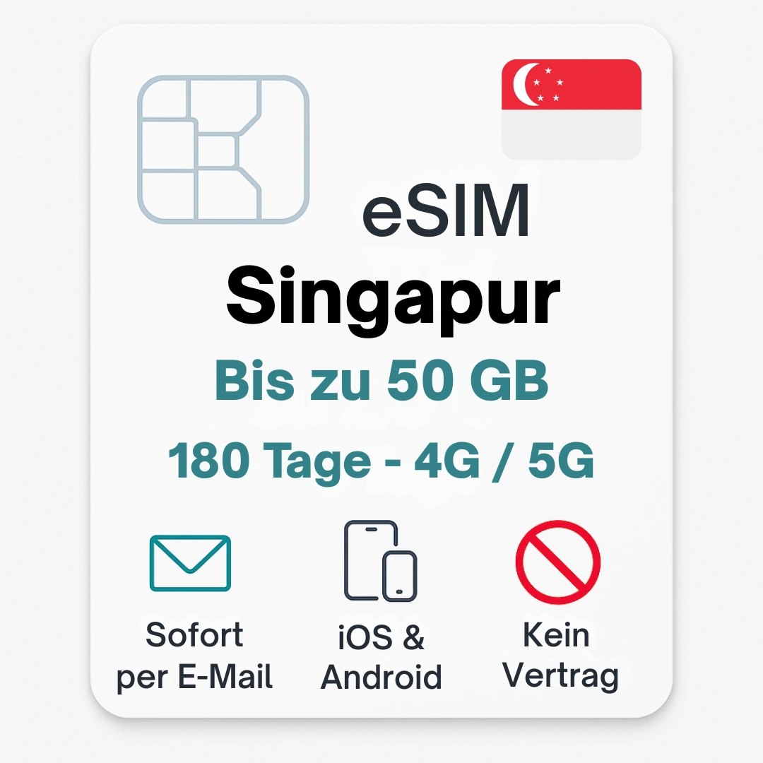 Die eSIM Singapur von POVNOMAD ermöglicht dir mobiles Internet direkt nach der Landung – ohne eine lokale SIM-Karte kaufen zu müssen und ohne teure Roaminggebühren. QR-Code scannen, aktivieren und direkt online gehen. Ideal für Citytrips, Stopover oder Business-Reisen.