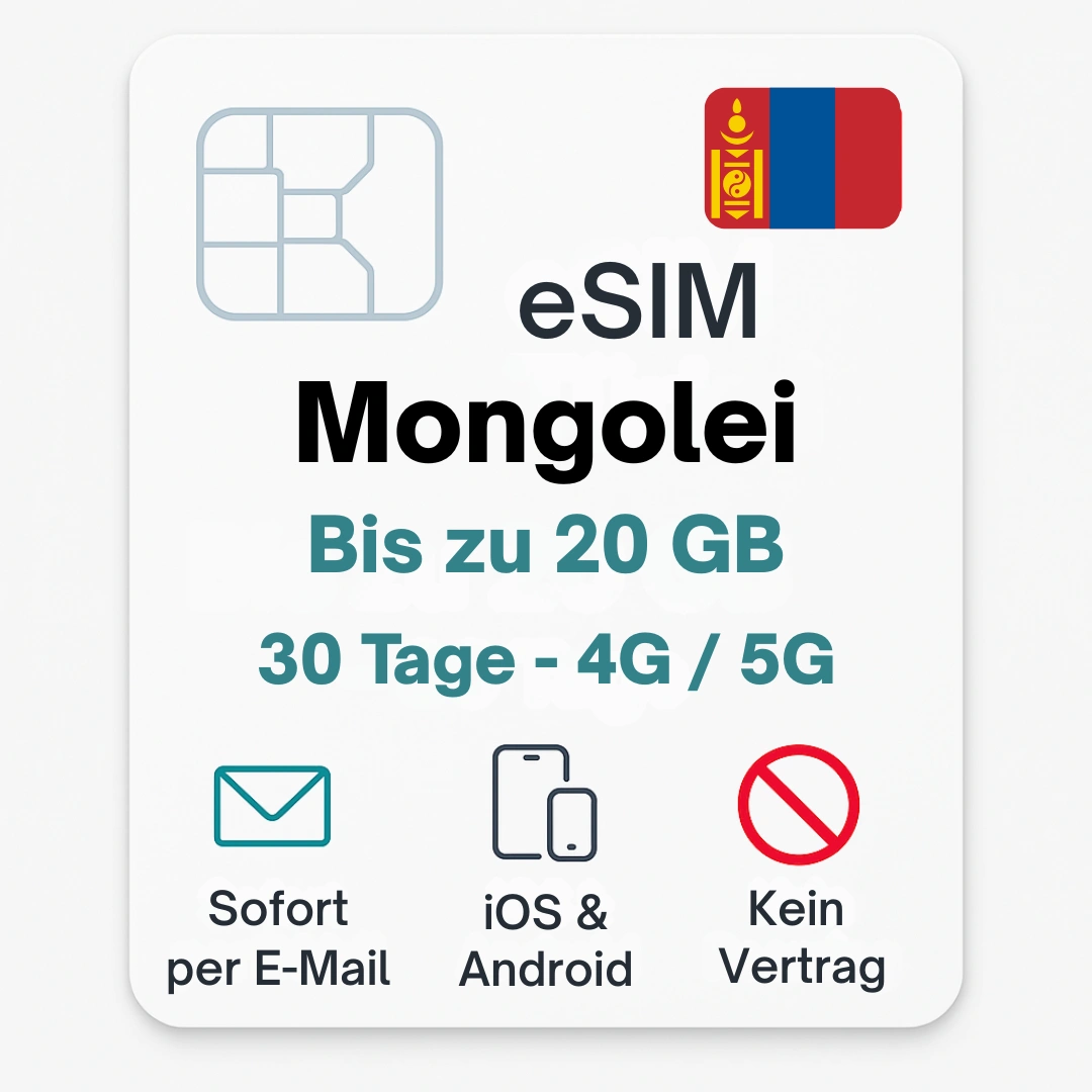 💡 Optional: „Mongolei Lokale Karte“ inkl. lokaler Telefonnummer (für Anrufe & SMS). Ideal für längere Aufenthalte und Workation. Erhältlich auf Nachfrage.