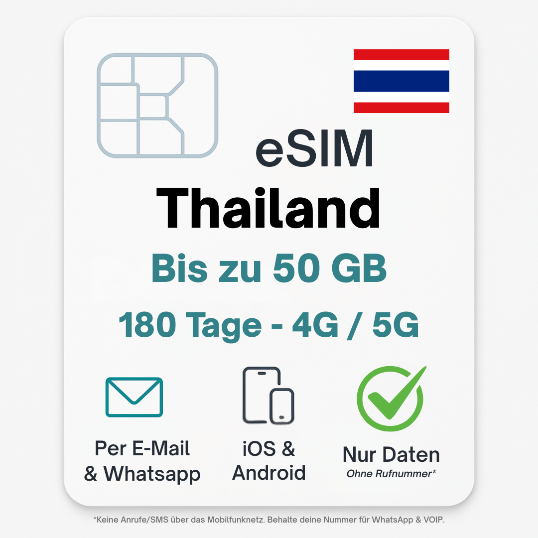 🌍 eSIM Thailand – sofort aktivierbar & ohne Roaminggebühren